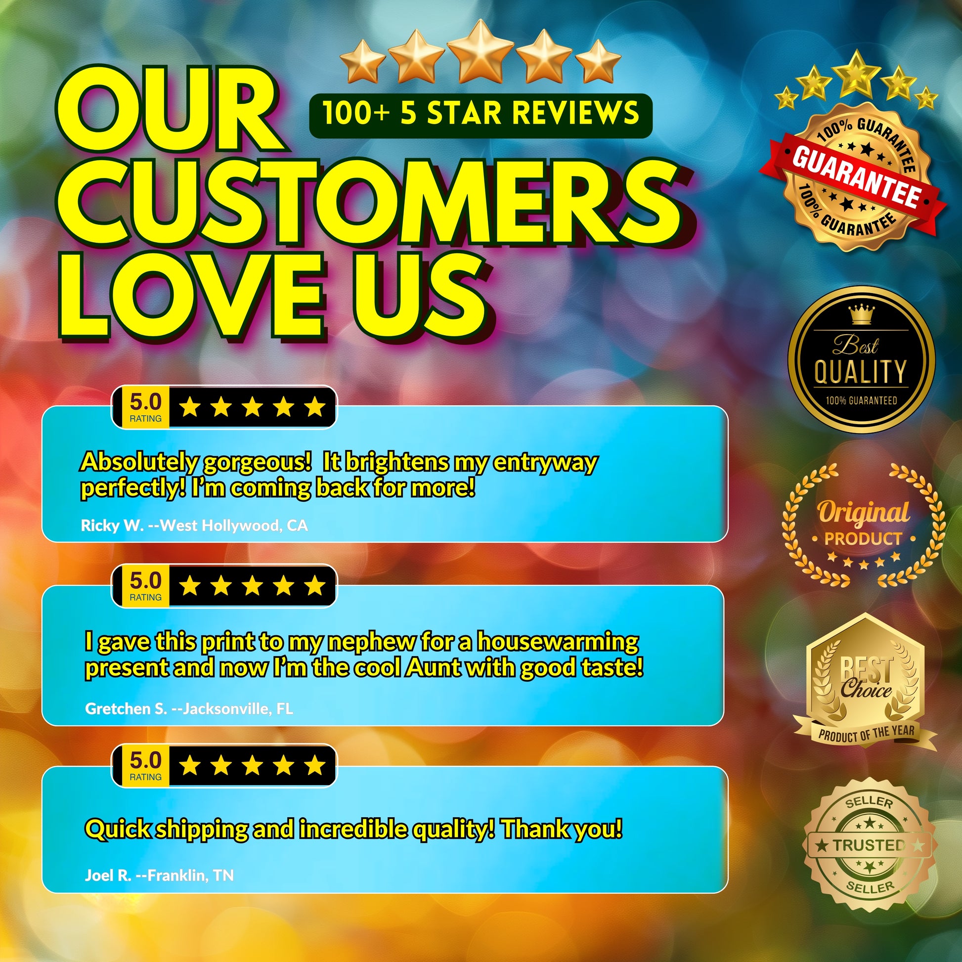 This print is so amazing! High quality with such vibrant colors. We can’t stop looking at it and smiling. Shipping was fast and seller was very communicative.