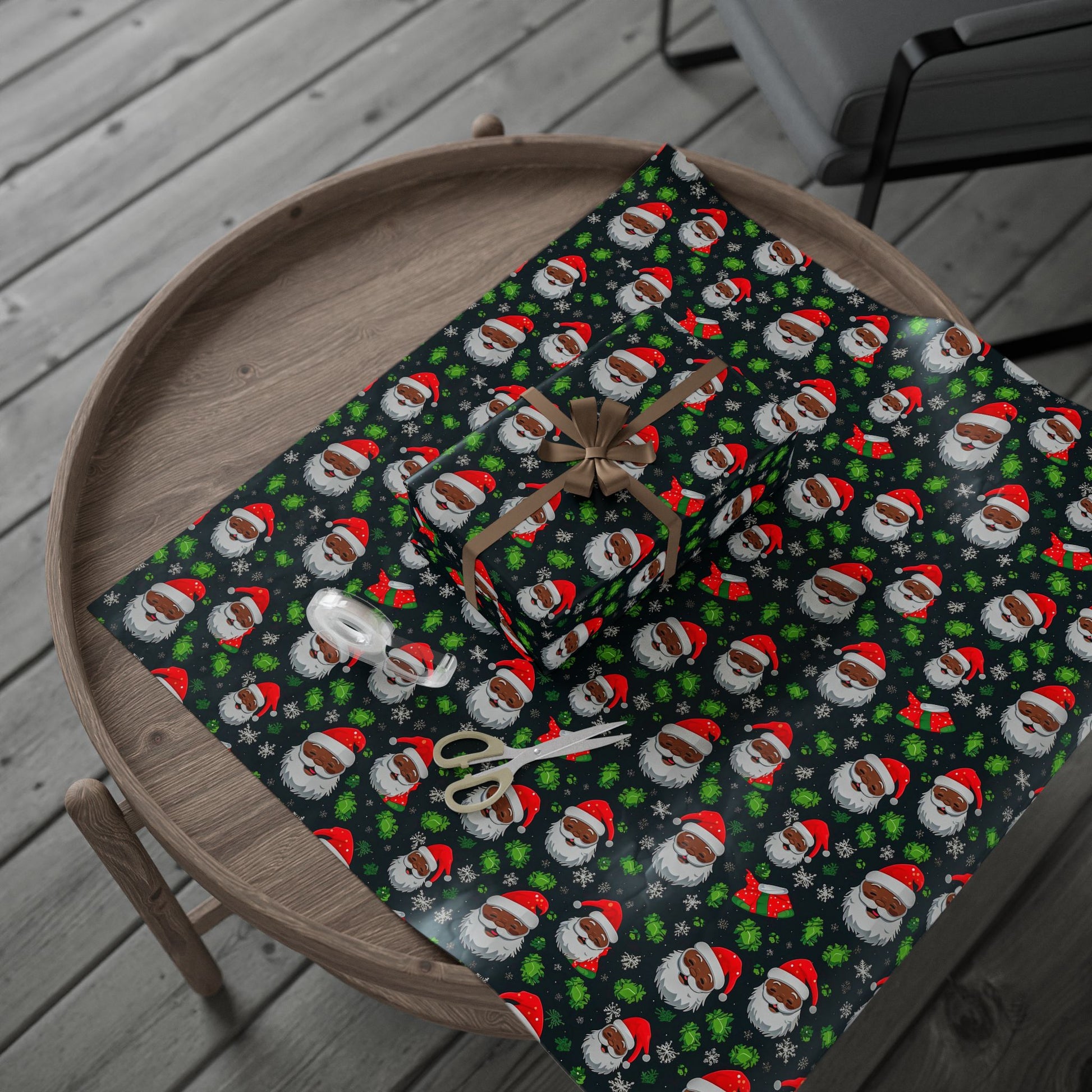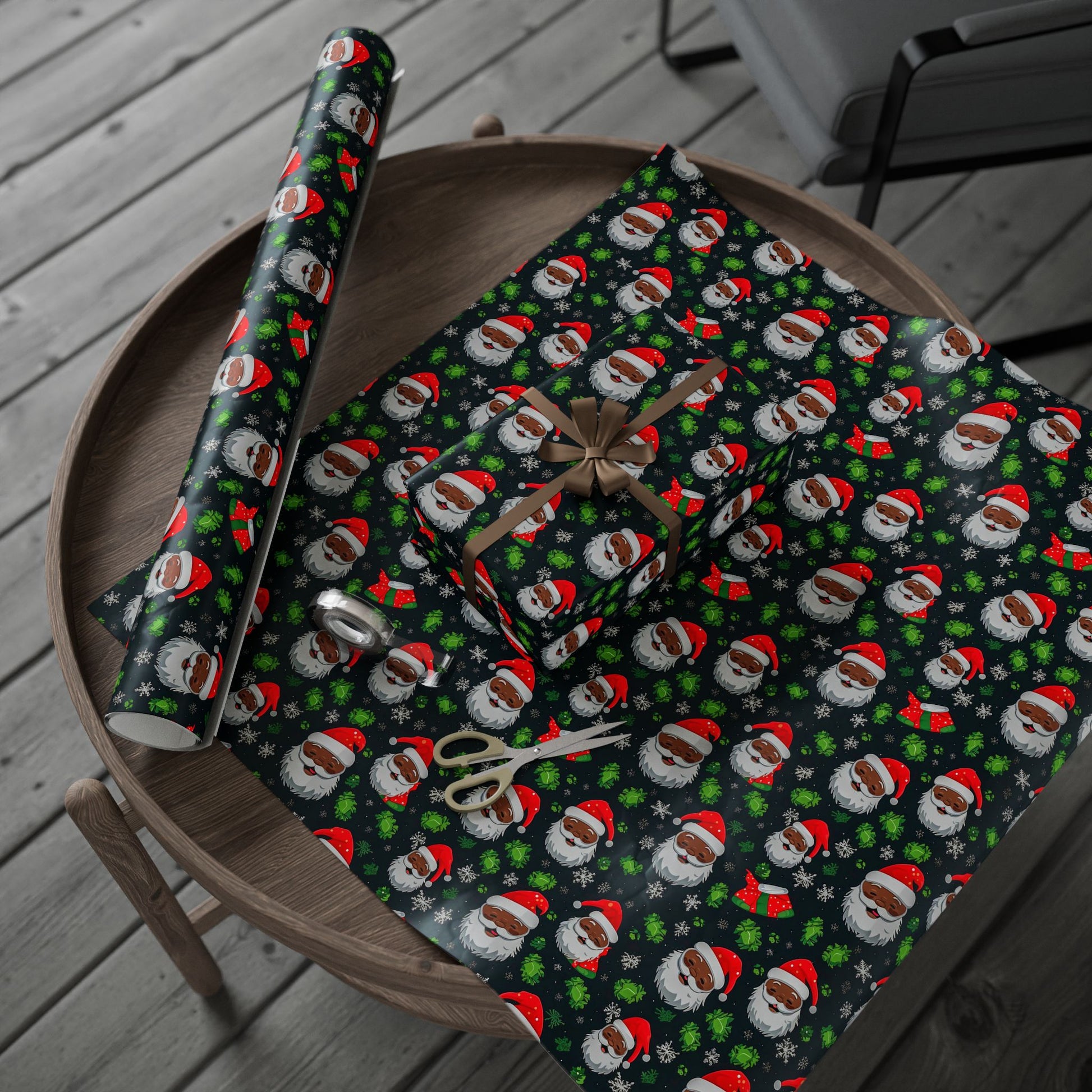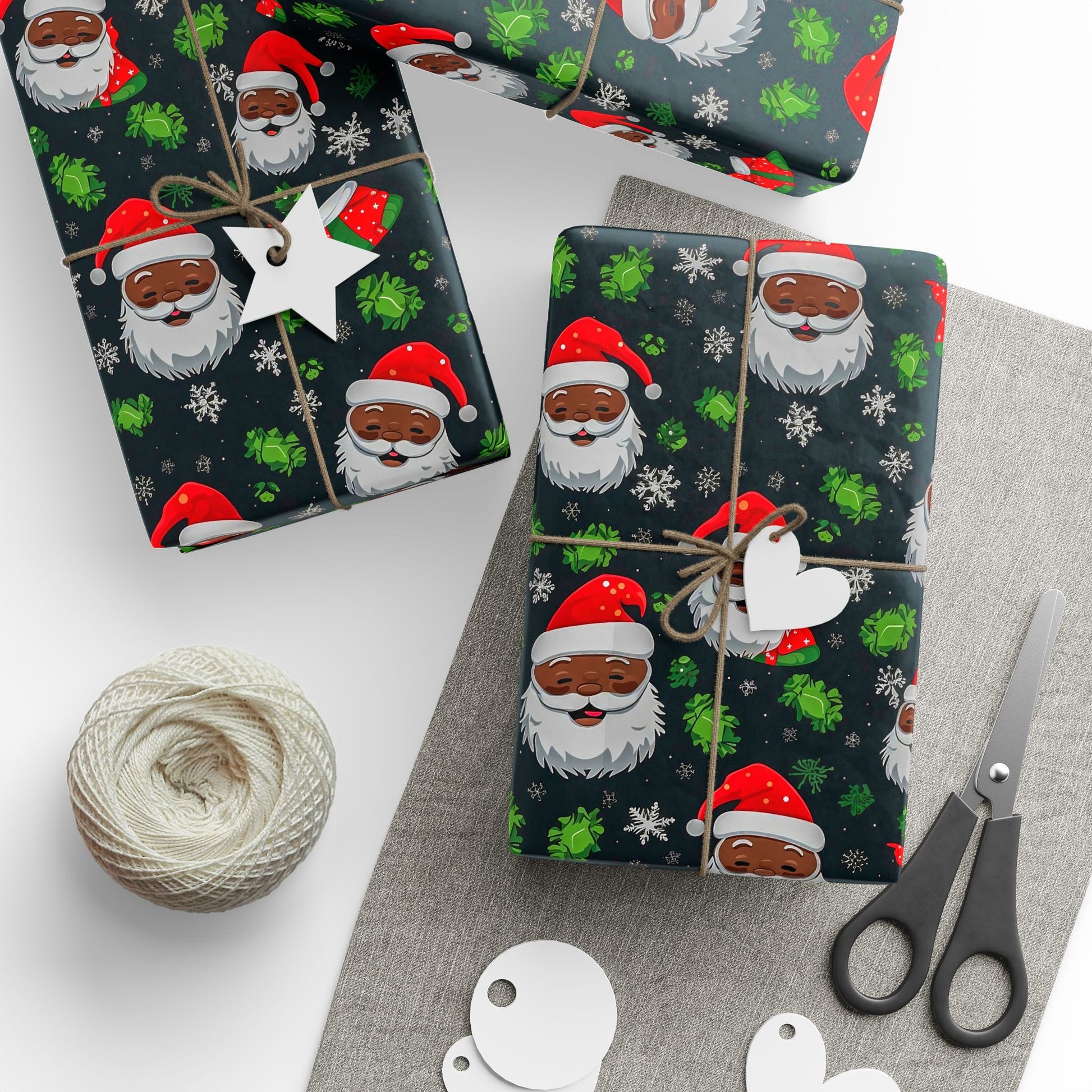 Wrap your gifts in our custom gift wrapping paper featuring black Santa Claus. Available in multiple sizes, perfect for any occasion. This wrapping paper features edge-to-edge printing on a premium gloss paper (90 GSM) for a smooth and clean look.