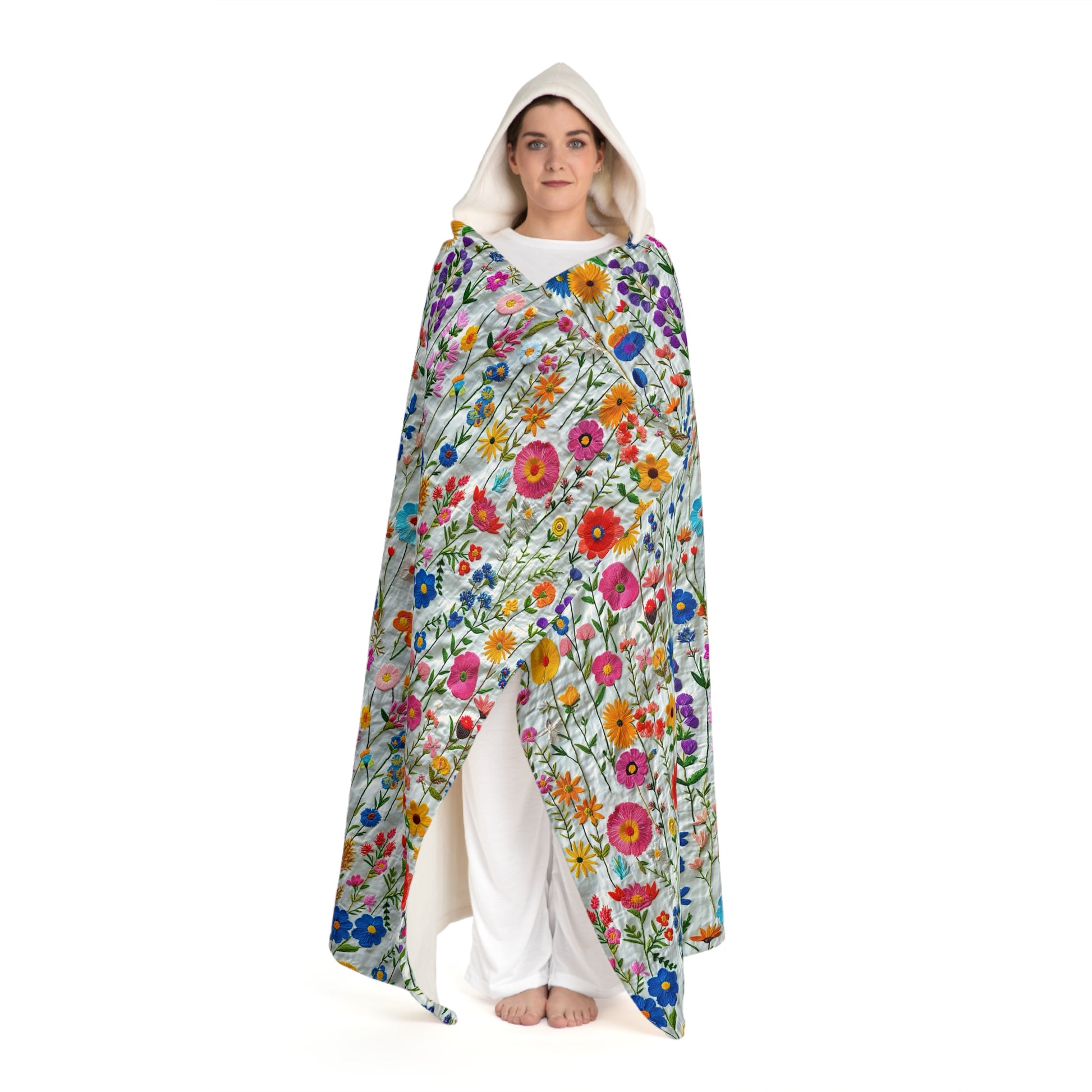 Cable Knit Hooded Sherpa Blanket | Faux Embroidery Flowers