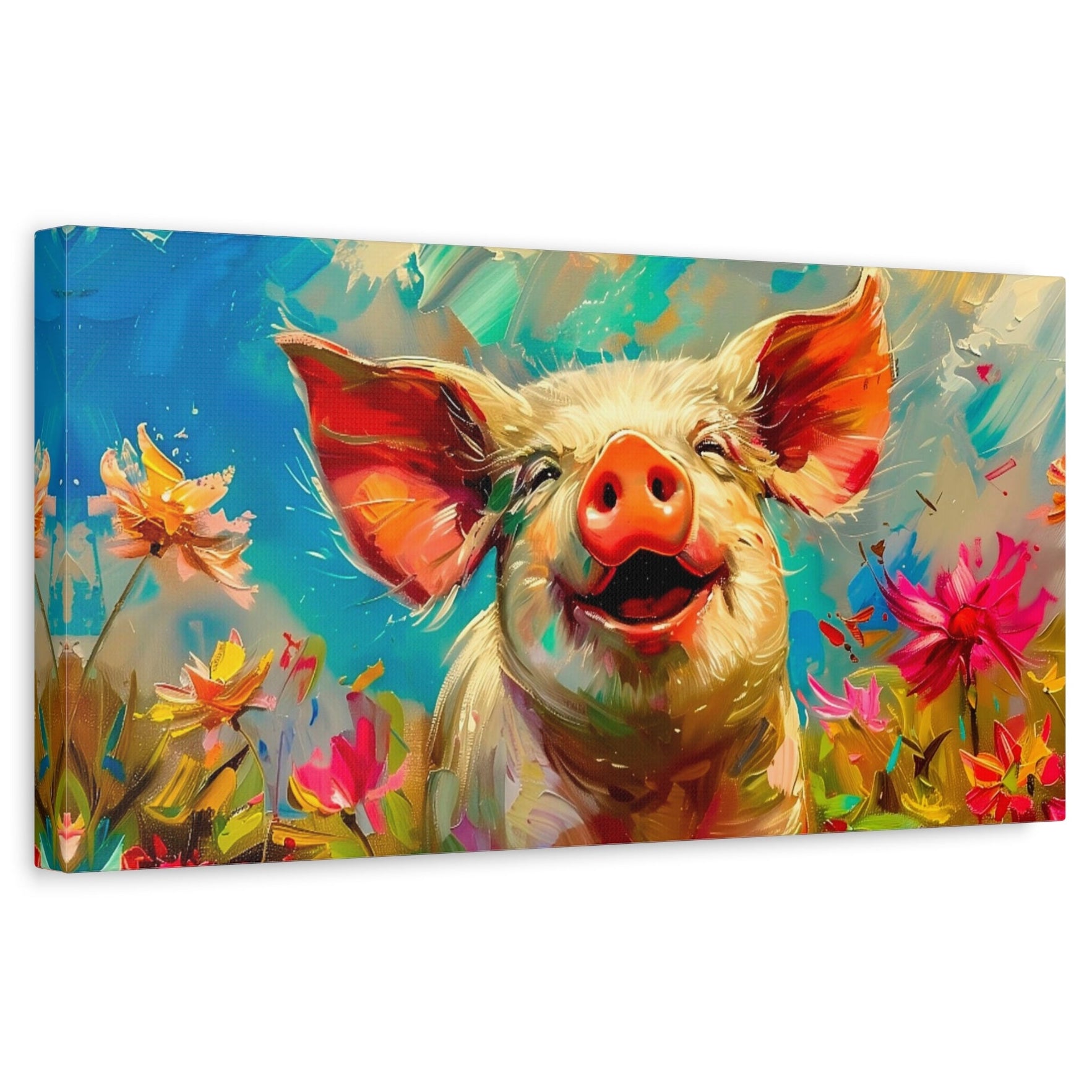 Spring Pig in Blossoms Canvas Art Print - Pig Portrait Art for Home & Office