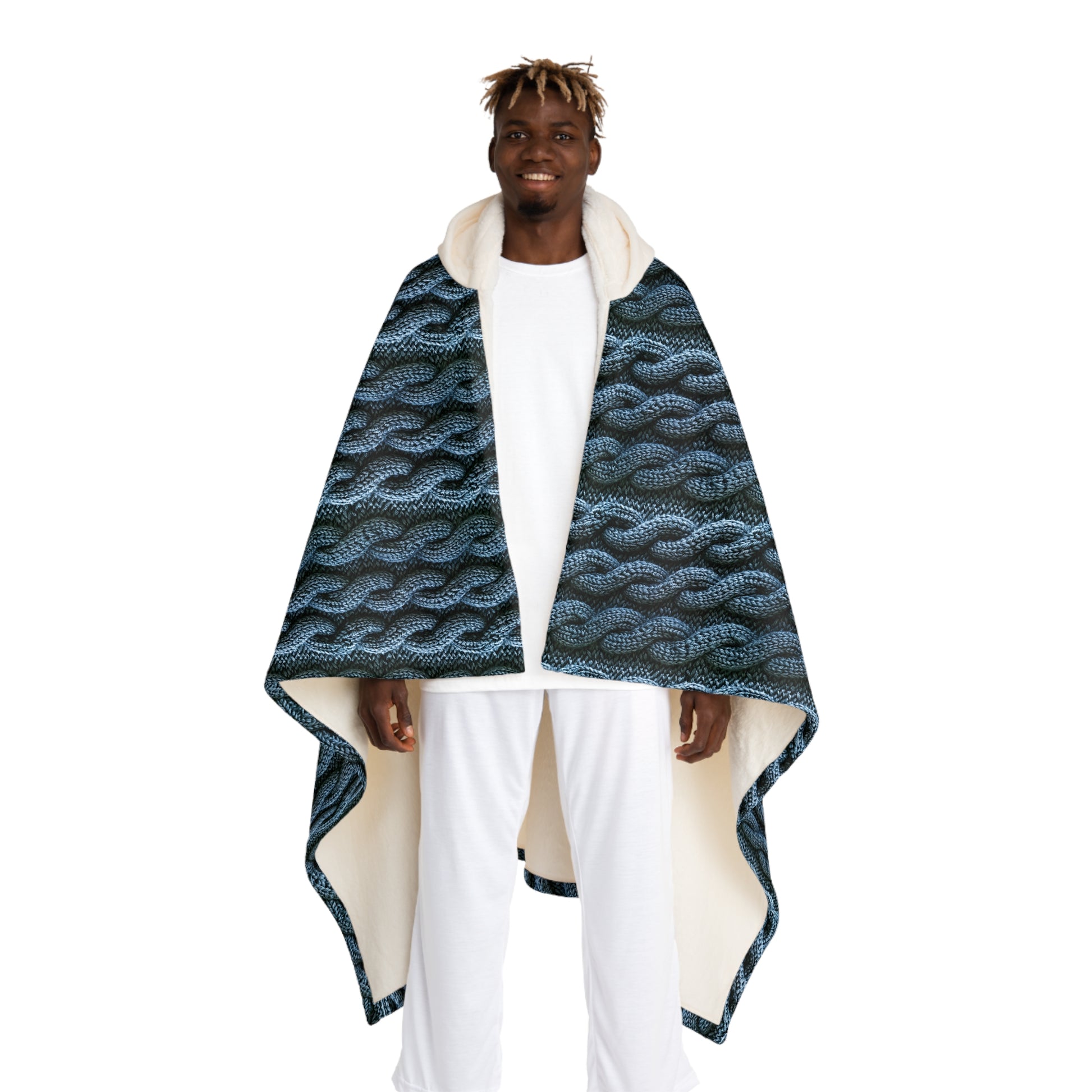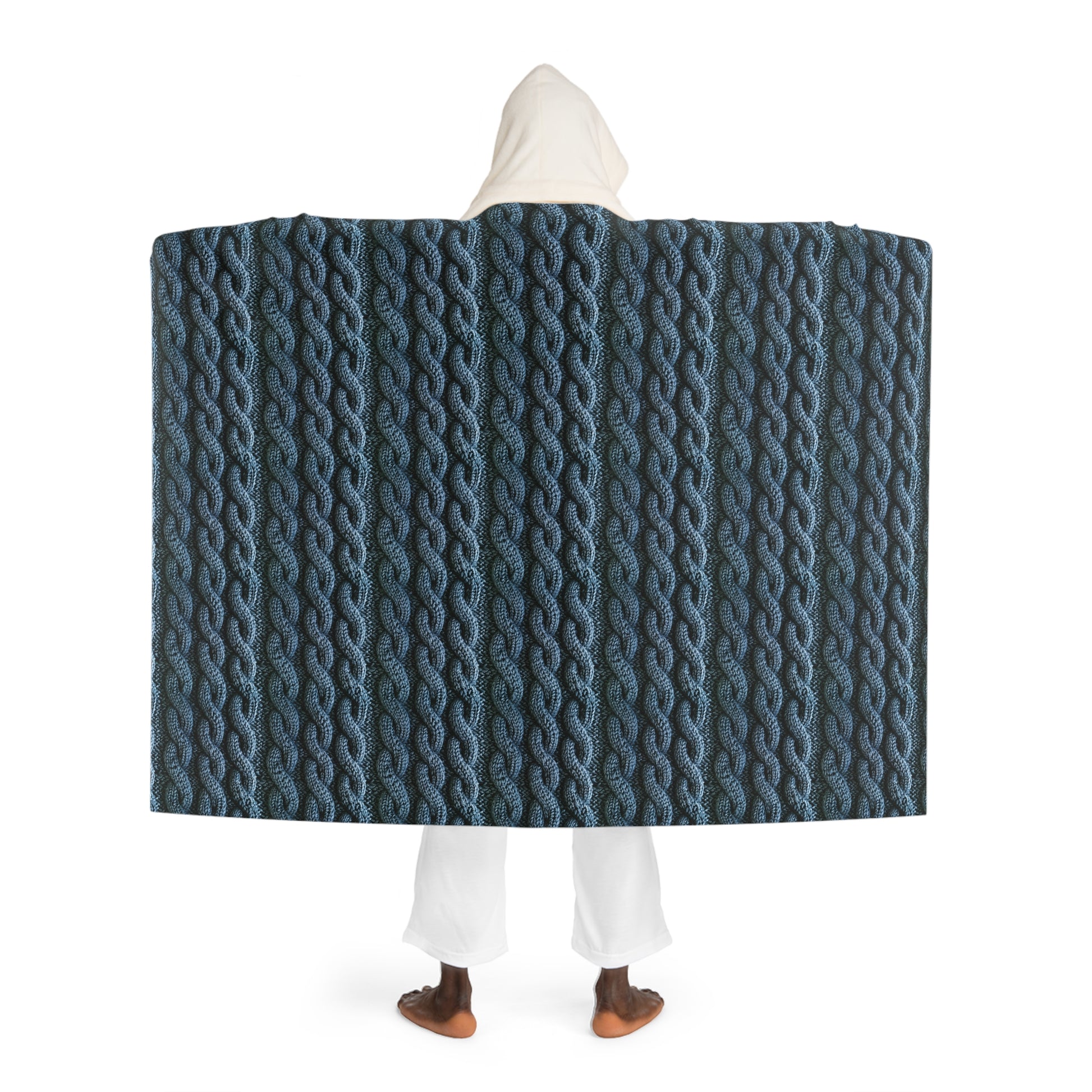 Faux Cable Knit Hooded Sherpa Blanket - Blue