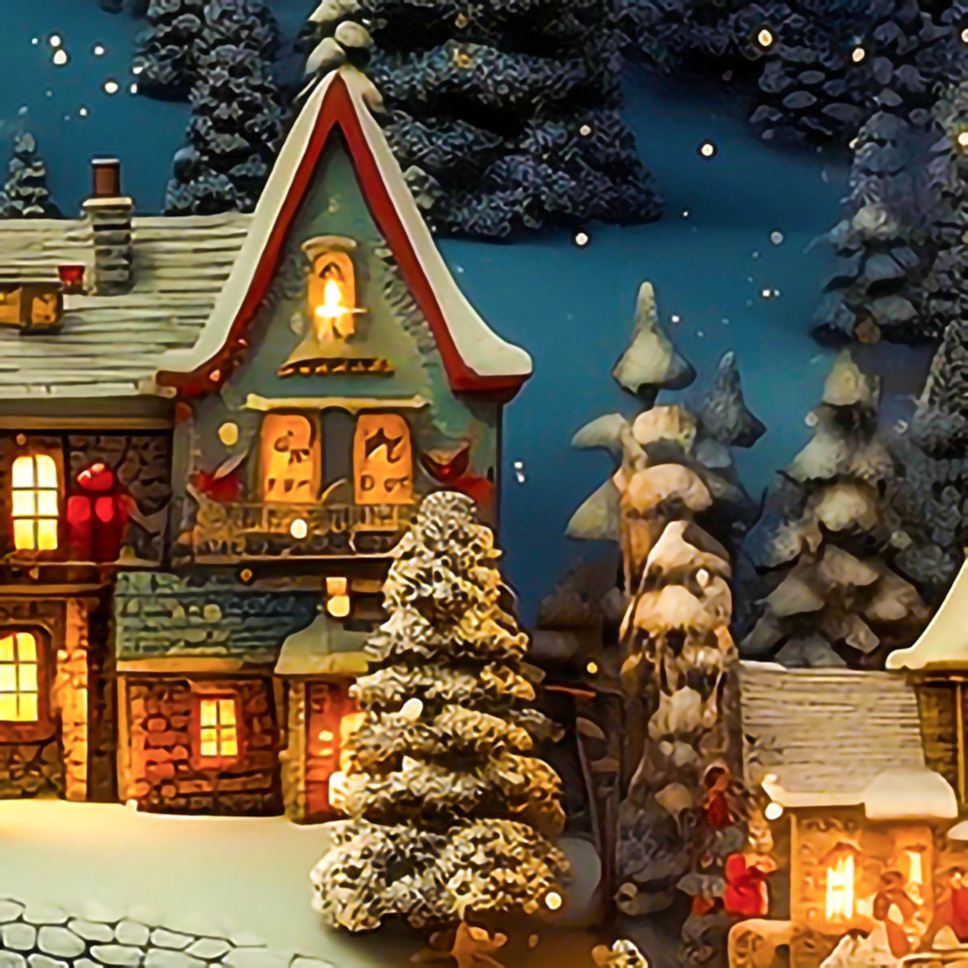 Transport yourself back home to the snow-capped mountains and smell the wood burning in the fireplace. This wrapping paper is special. Look at the warm glow from inside each building, the Christmas tree lights that seem to glow into infinity. Anything is possible here--a magical holiday town that creates memories that last a lifetime. So, grab some hot cocoa and grab your chair by the fire-- this will be a Christmas to remember.
