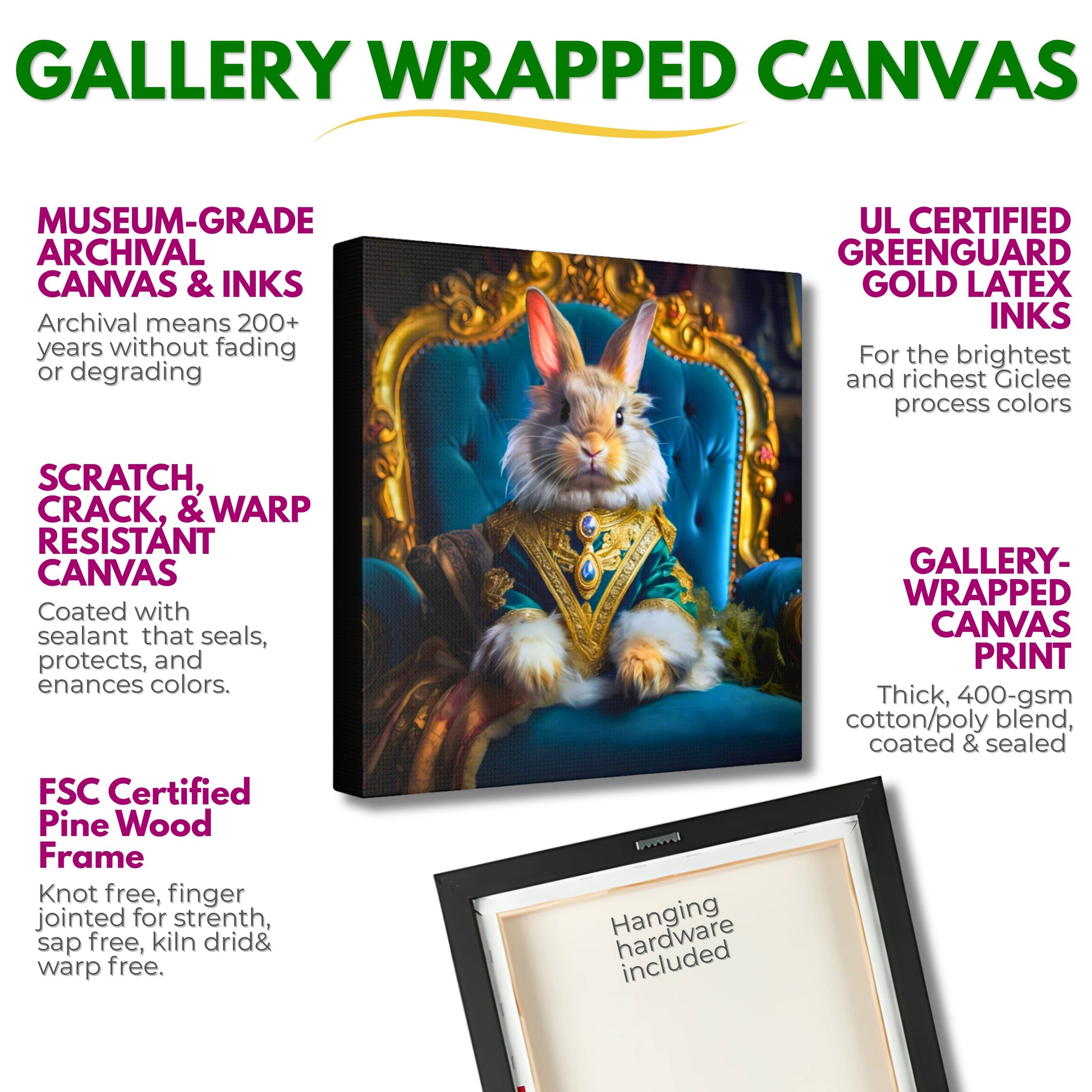 Rabbit Royalty Portrait | Canvas Wall Art Print