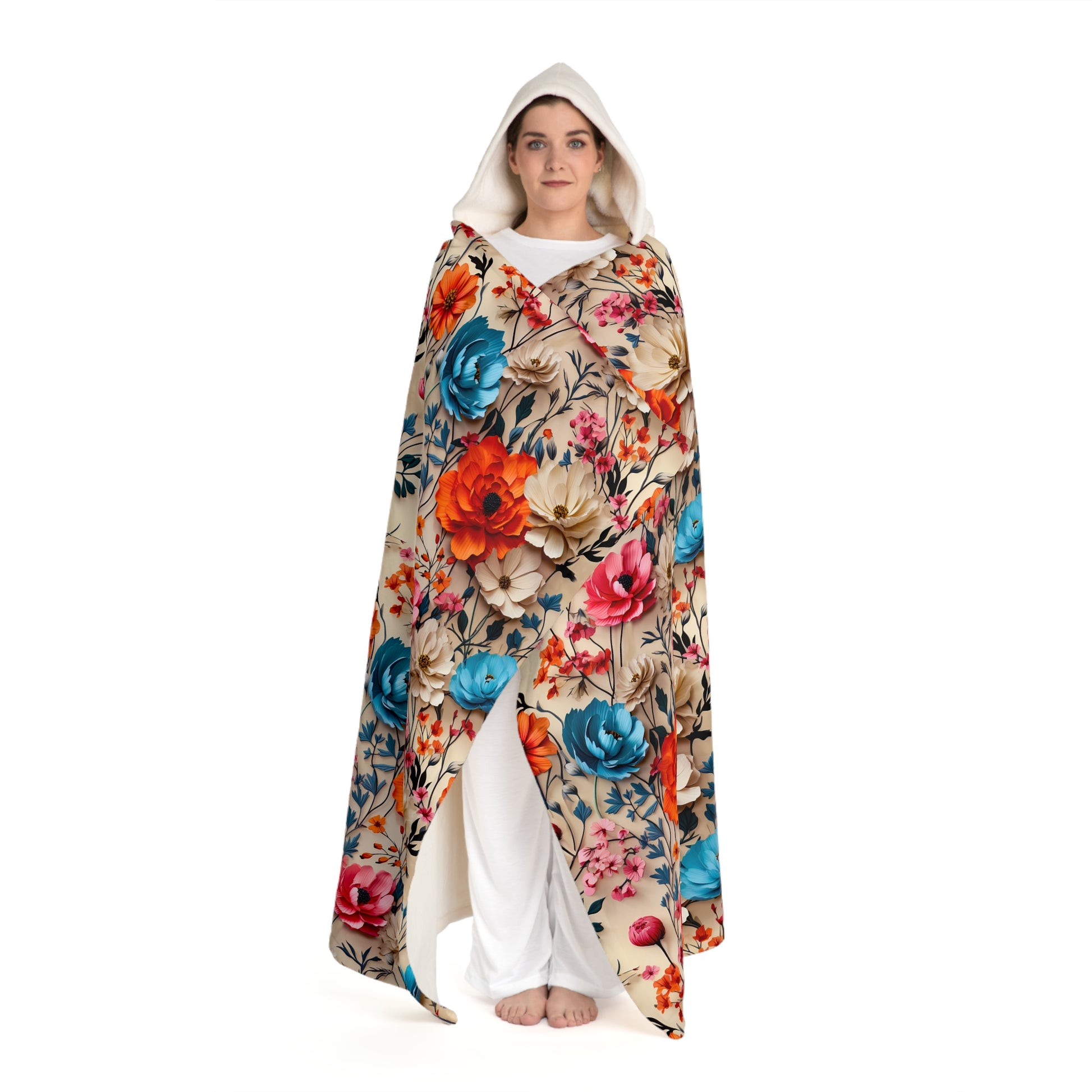 Vintage Floral Cable Knit Hooded Sherpa Blanket